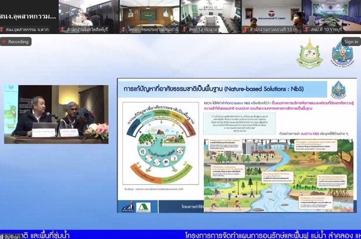ในการประชุมได้นำเสนอขอบเขต วัตถุประสงค์ แนวทางการศึกษา และความก้าวหน้าของโครงการ พร้อมทั้งสภาพปัญหาในการอนุรักษ์และฟื้นฟูแม่น้ำลำคลอง แหล่งน้ำธรรมชาติ และพื้นที่ชุมน้ำ โดยมีหน่วยงานที่เกี่ยวข้องในพื้นที่ (ภาคกลาง ภาคตะวันตก ภาคตะวันออก ภาคเหนือ ภาคตะวันออกเฉียงเหนือ และภาคใต้) ประกอบด้วยองค์กรปกครองส่วนท้องถิ่น ประชาชน และผู้มีส่วนได้ส่วนเสีย ร่วมให้ข้อมูล เสนอแนะประเด็นปัญหา เพื่อการมีส่วนร่วมในการจัดทำโครงการแผนงานที่เกี่ยวข้องกับการอนุรักษ์และฟื้นฟูแม่น้ำลำคลองแหล่งธรรมชาติและพื้นที่ชุมน้ำต่อไป