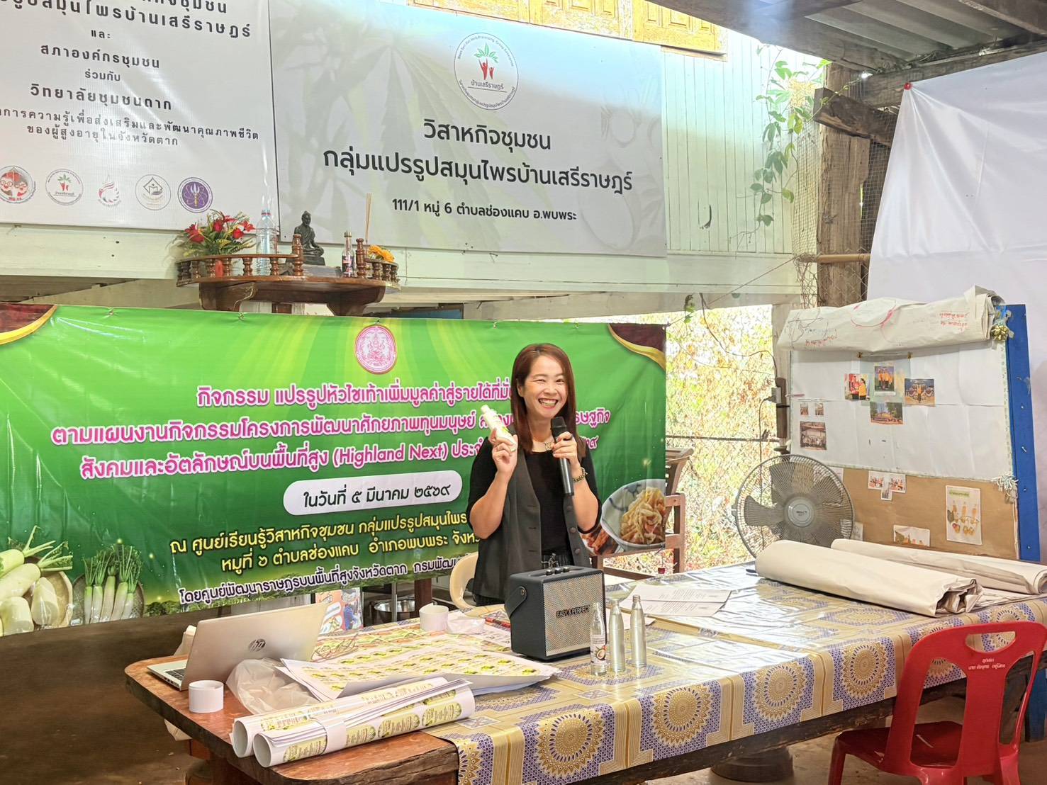 วันที่ 5 มีนาคม 2569 เวลา 08.00 น. นางอรุณี คันธมาลา อุตสาหกรรมจังหวัดตาก มอบหมายให้ นางสาวเบญจมาภรณ์ แผ่นคำ หัวหน้ากลุ่มส่งเสริมและพัฒนาอุตสาหกรรม พร้อมด้วย นางสาวกาญจนา งามพรม นักวิชาการมาตรฐาน ร่วมเป็นวิทยากรบรรยายให้ความรู้ ในหัวข้อเรื่อง “การพัฒนาผลิตภัณฑ์ให้ได้มาตรฐานผลิตภัณฑ์ชุมชน (มผช.) ให้แก่กลุ่มวิสาหกิจชุมชนกลุ่มแปรรูปสมุนไพรบ้านเสรีราษฎร์ หมู่ที่ 6 บ้านเสรีราษฎร์ ตำบลช่องแคบ อำเภอพบพระ จังหวัดตาก และลงพื้นที่ให้คำปรึกษาแนะนำเบื้องต้นและเชิงลึกเฉพาะทาง การเชื่อมโยงนโยบาย 4 มิติ และให้บริการความช่วยเหลือ บ่มเพาะ ส่งเสริมอาชีพ ด้านการส่งเสริมและพัฒนาศักยภาพของผู้ประกอบการ จำนวน 2 ราย ได้แก่ 1. อินเดียนลอคเครื่องหนังเมืองตาก 2. วิสาหกิจชุมชนกลุ่มทอเสื่อกกบ้านหนองนกปีกกา ณ สวนอุตสาหกรรม เครือสหพัฒน์ แม่สอด พร้อมทั้งลงพื้นที่ให้คำแนะนำ เพื่อแก้ไขปรับปรุงผลิตภัณฑ์ให้เป็นไปตามที่มาตรฐานกำหนด จำนวน 3 ราย ได้แก่ 1. ถั่วแม่ผ่อง 2. ถั่วทอดป้าติ่น 3. ร้านผ้าทอสายทอง ณ อำเภอแม่สอด จังหวัดตาก