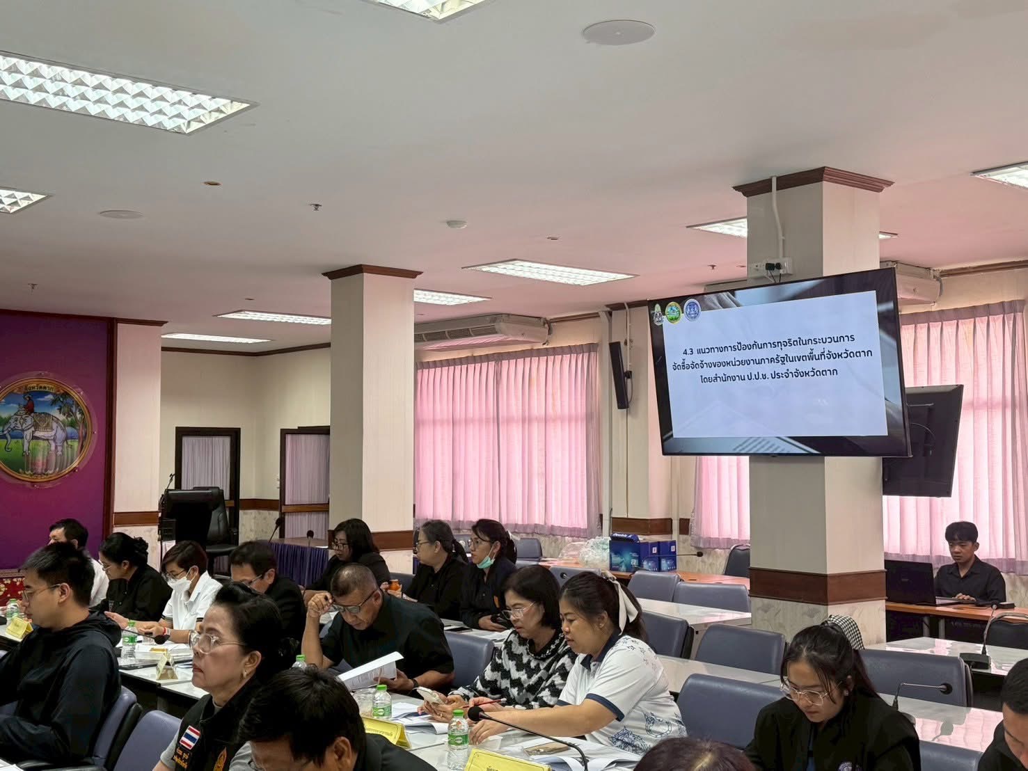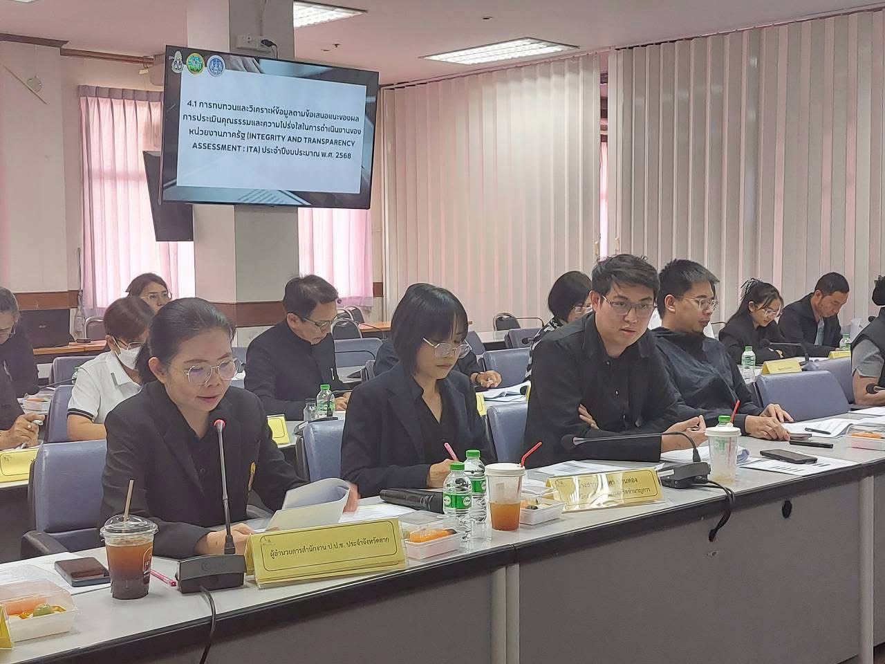 โดยมี นายประเดิม เดชายนต์บัญชา รองผู้ว่าราชการจังหวัดตาก เป็นประธานฯ ที่ประชุมรับทราบรายงานสถานการณ์การทุจริตในพื้นที่จังหวัดตาก ประจำไตรมาสที่ 2 รายงานผลการดำเนินโครงการด้านการป้องกันการทุจริตตามแผนปฏิบัติการและแผนการใช้งบประมาณรายจ่ายประจำปีงบประมาณ พ.ศ. 2569 รายงานผลการดำเนินงานป้องกันการทุจริตเชิงรุกตามนโยบายของ คณะกรรมการ ป.ป.ช. การประเมินคุณธรรมและความโปร่งใสการดำเนินงานของหน่วยงานภาครัฐ (ITA) ประจำปีงบประมาณ 2569 การดำเนินโครงการตามแผนงานบูรณาการต่อต้านการทุจริตและประพฤติมิชอบ ประจำปีงบประมาณ 2568 และการขับเคลื่อนโครงการระบบเฝ้าระวังการทุจริตเชิงรุกในหน่วยงานภาครัฐประจำปีงบประมาณ พ.ศ.2569