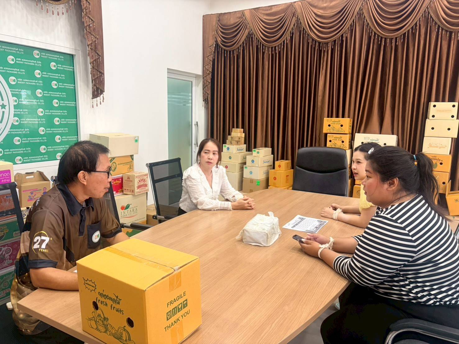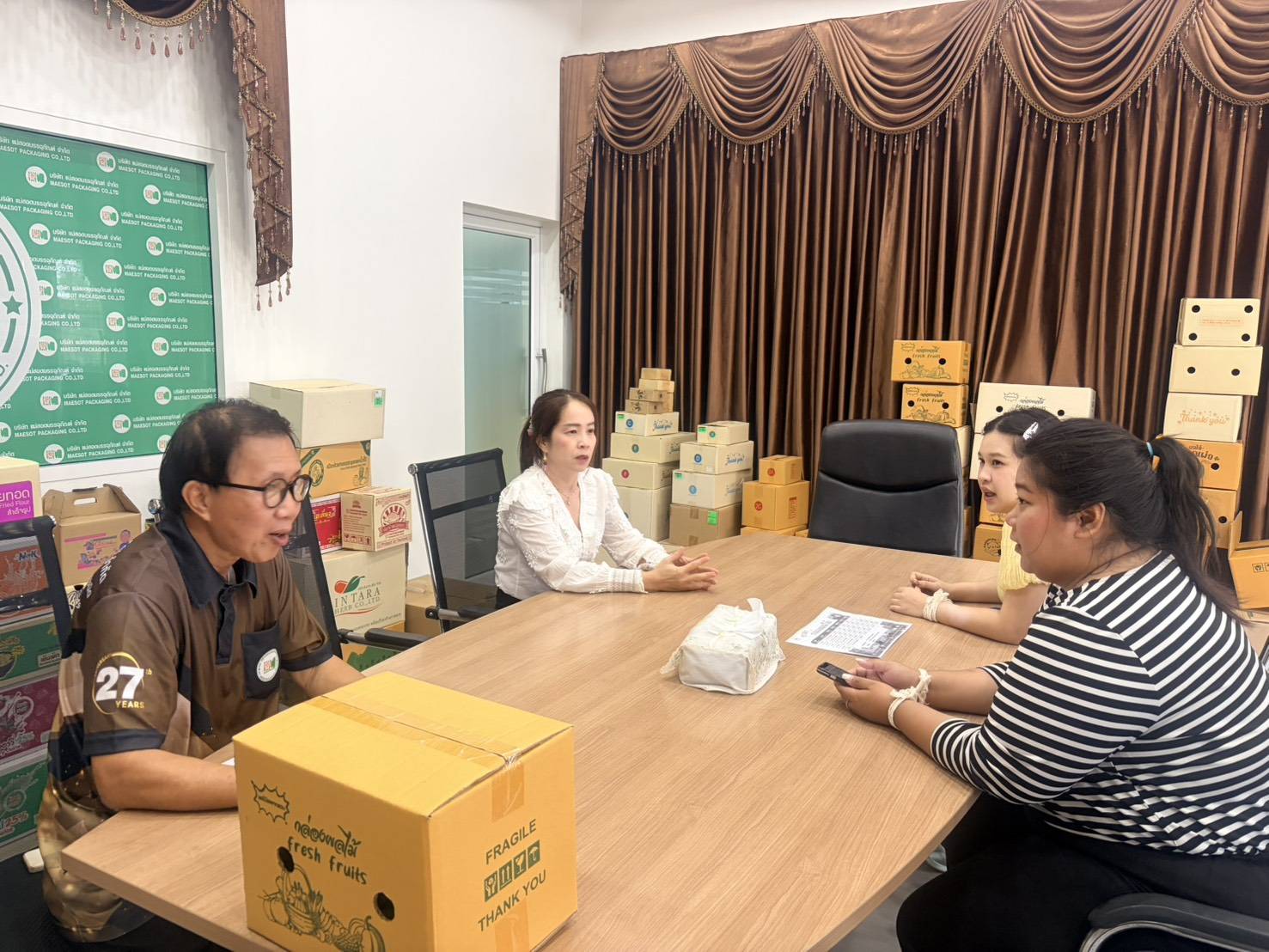 วันที่ 9 เมษายน 2569 เวลา 08.30 น.นางอรุณี คันธมาลา อุตสาหกรรมจังหวัดตาก มอบให้นางสาวเบญจมาภรณ์ แผ่นคำ หัวหน้ากลุ่มส่งเสริมและพัฒนาอุตสาหกรรม และนางสาววทันศนี หล่ำรัศมี เจ้าหน้าที่บริหารงานทั่วไป ลงพื้นที่เยี่ยมเยียน และติดตามผู้ประกอบการ SMEs ที่ได้รับการสนับสนุนจากกองทุนพัฒนาเอสเอ็มอีตามแนวประชารัฐ 2 ราย ได้แก่ 1. บริษัท แม่สอดชลกิจ จำกัด 2. ห้างหุ้นส่วนจำกัด ปิงน่านเม็ททอลกลาสและประชาสัมพันธ์สินเชื่อเสริมสภาพคล่องธุรกิจ (คงกระพัน) และโครงการสินเชื่อเพื่อเพิ่มขีดความสามารถธุรกิจ (เสือติดปีก) จำนวน 1 ราย ได้แก่ 1. บริษัท แม่สอดบรรจุภัณฑ์ จำกัด ณ.อำเภอแม่สอด จังหวัดตาก