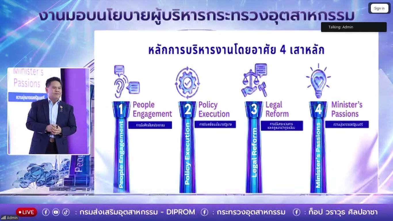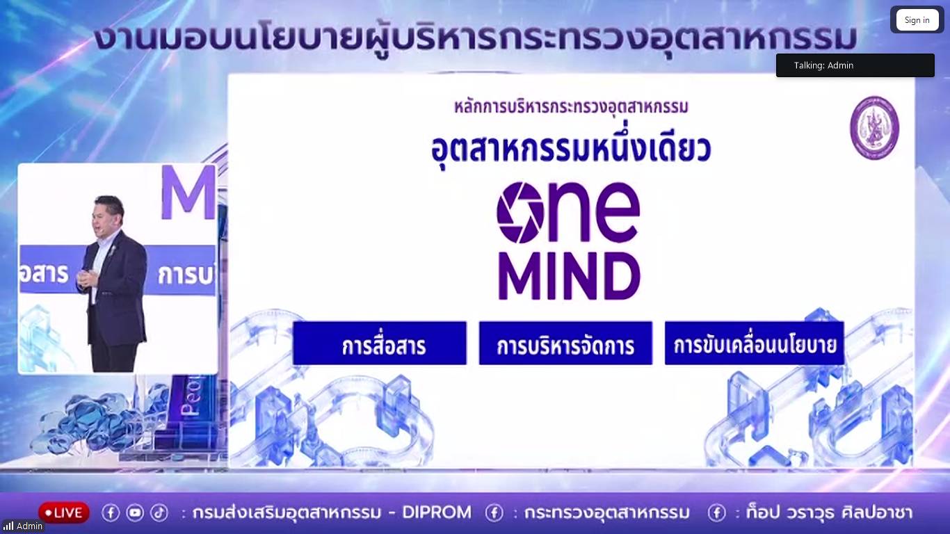 วันพุธที่ 22 เมษายน 2569 นายวราวุธ ศิลปอาชา รัฐมนตรีว่าการกระทรวงอุตสาหกรรม มอบนโยบายการบริหารงานอย่างเป็นทางการ โดยเน้นย้ำความเชื่อมั่นในการขับเคลื่อนด้วยหลักการ “ONE MIND” หรือการรวมพลังทุกหน่วยงานในกระทรวงให้สื่อสาร และทำงานไปในทิศทางเดียวกัน เพื่อแก้ปัญหาของประชาชนอย่างบูรณาการผ่าน 4 เสาหลัก (4 Pillars) ที่ตอบโจทย์ทั้งเศรษฐกิจโลก และคุณภาพชีวิตของคนไทย